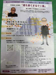 講演会はいろいろな所でも沢山ありますが、この度八王子に本店を置く㈱うかい高級料理店(JASDAQ上場)の株式を取得、グループ化をした方でも有名なお方であります。