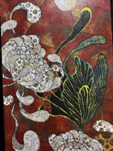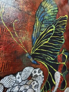 そこに踊る喜びの菊と縁起の良いアゲハ蝶。大きな色に守られて、安心して咲き誇り、舞っています。