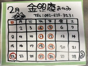 2月お休み