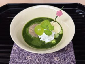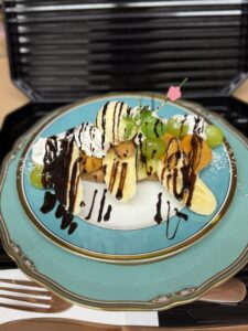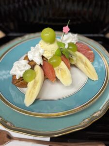 季節により果物は変わりますが、たっぶりのあんことフルーツで召し上がっていただきます。