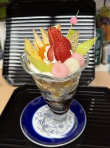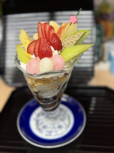 天草から作った寒天と、季節のフルーツたっぷりの和のパフェです。